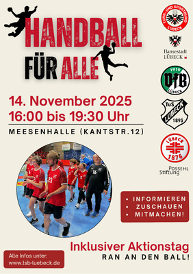 Der Turn- und Sportbund der Hansestadt Lübeck lädt ein zum inklusiven Aktionstag „Handball für alle“.