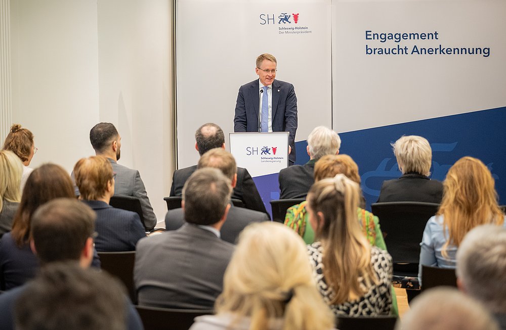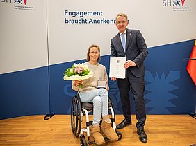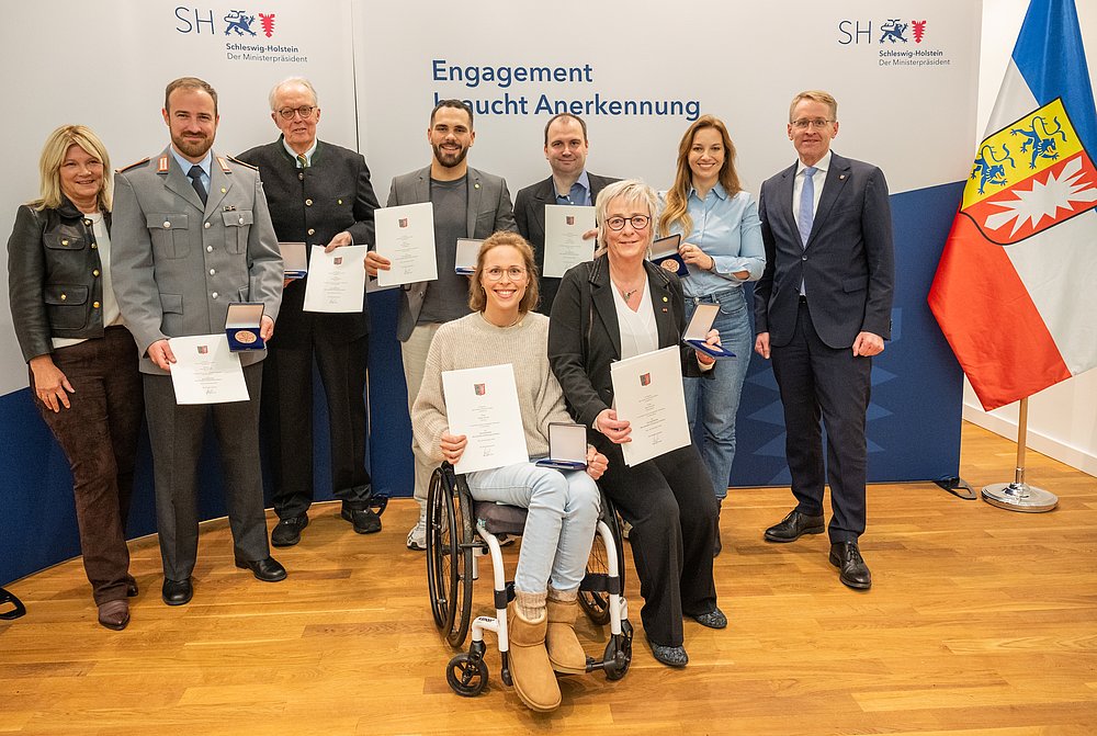 Am 18. November 2025 wurden im Landeshaus Kiel sechs herausragende Persönlichkeiten des Sports mit der Sportplakette des Landes Schleswig-Holstein ausgezeichnet. Ministerpräsident Daniel Günther und LSV-Präsidentin Barbara Ostmeier würdigten ihr außergewöhnliches Engagement und ihre besonderen Leistungen für den Sport in unserem Land.